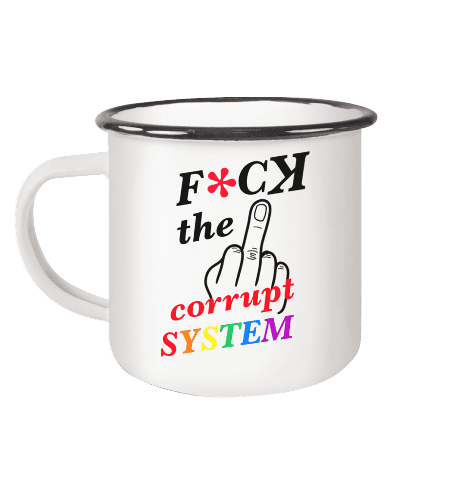Umsatzsteuerbefreit gemäß UStG §6, zzgl. VersandF*ck the corrupt System! – Emaille Tasse (Black)