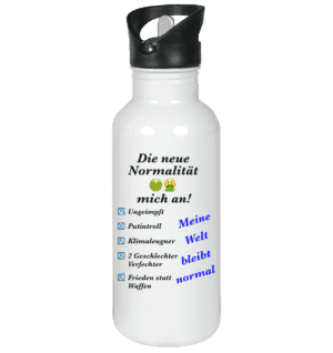 Umsatzsteuerbefreit gemäß UStG §6, zzgl. VersandDie neue Normalität – Edelstahl-Trinkflasche