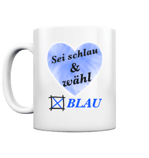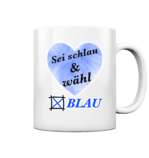 Rot Sei schlau & wähl Blau! – Panorama Tasse zweifarbig