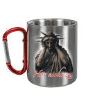 Die Edelstahl Tasse von Mei Meinung ist bruchfest, rostfrei und ideal für den Outdoor-Bereich. Mit ihrem integrierten roten Karabiner ist sie praktisch zum Mitnehmen. Die glänzende Metallic-Oberfläche verleiht der Tasse einen modernen Look.